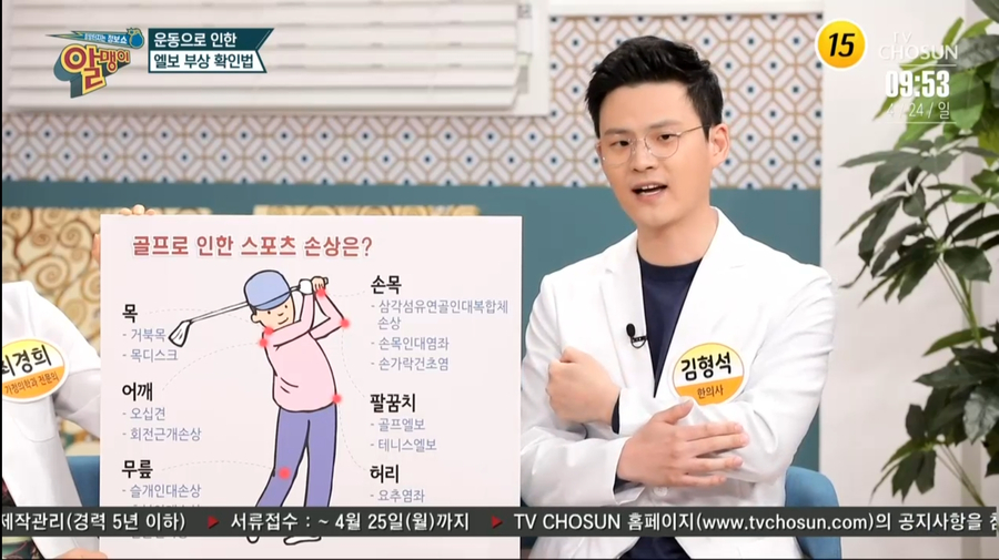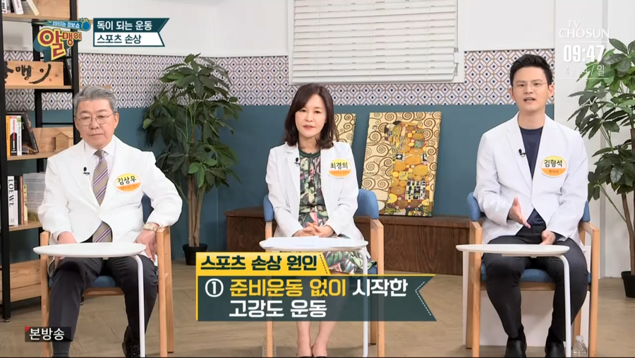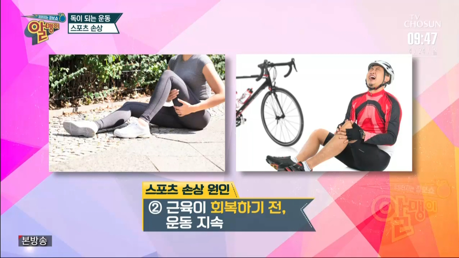 지난 4월 24일 일요일 아침 9시 40분 TV조선 알맹이에서 운동으로 인한 스포츠 손상에 대한 내용이 방영되었습니다^^